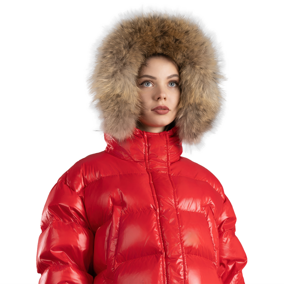 Special Details: Hood with natural fur in rich brown tones, oversized square pockets, thick zippers, windproof and insulating design